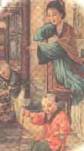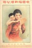 月份牌海報畫中的女性圖像,也有許多以母愛為訴求的母子親情圖,下圖為較典型的圖像: