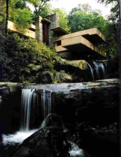 直接蓋在瀑布之上,與瀑布同住。屋名「落水」(Fallingwater)