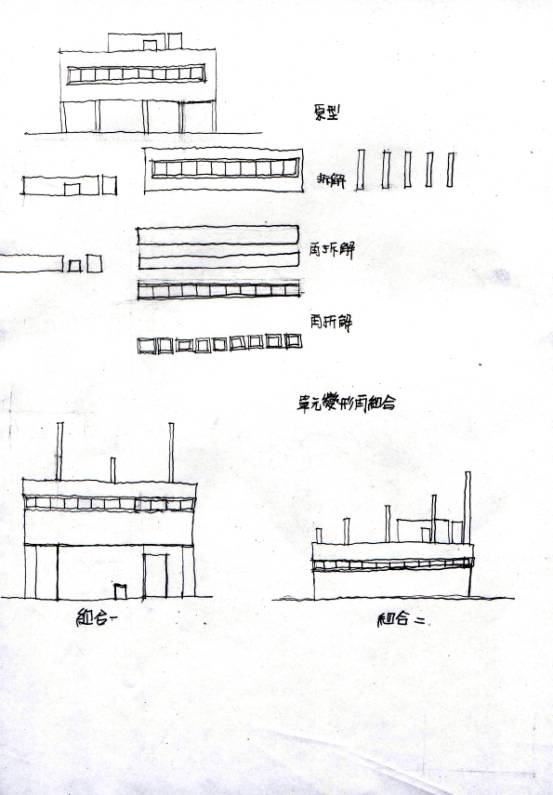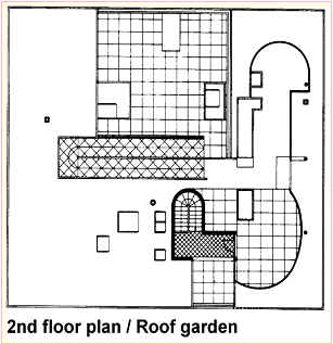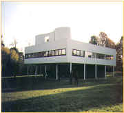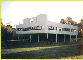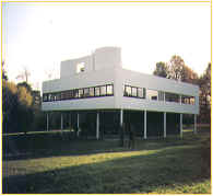 (1)Villa Savoye 1929~1931 Villa Savoye建築在Poissy的一位於法國Paris的西北方的小鎮, 基地是鎮外的一草地,四周有部份樹木圍繞著,且擁有一北方和西方的視野。 建於1929年至1931年之間,是那被稱為「四種住宅組合」中的最後一個作品。 它非常清楚的說明了柯布的「新建築的五點原則」。