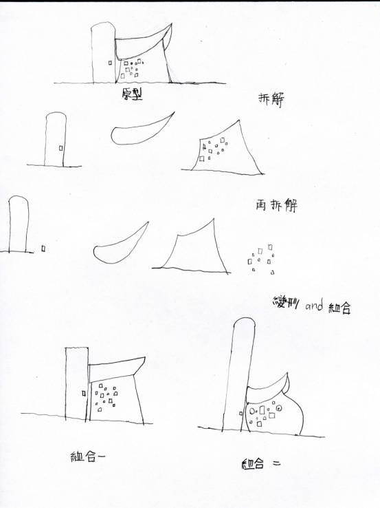 第二層次:作品拆解與變形試誤體驗。要仔細判斷拆的是不是〞節點〞或〞接點〞(拆 解後的稱為單元)可獨立作審美判斷。