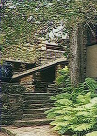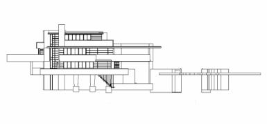 萊特草原式風格,充分表現出建築物體與環境空間的互動關係;以及人造物與自然物之間的和諧對話;落水山莊可說是經典之作,然而筆者認為,仍有空間再做進一步解構,在一次的與自然環境中更加「密切」的效果。