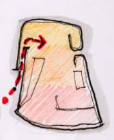 入口動線的交接節點:入口動線經由外界環境將禮拜者導入室內時,其過度層次過淺,因此使得心情的轉換空間上,較不易有程序性接受及呼應室內空間;所以我將入口動線的交接節點錯開,自行導入一「窄巷」空間,讓這小教堂的層次加深,且能有一個室內與室外的中界空間。