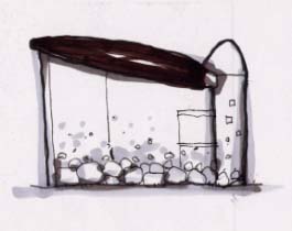 建築物與「大地」節點:在整體位址於平坦的山丘之上,其建築符號,如前所說,帶有如混沌未開的史前巨石所遺留下的歷史痕跡,極富古趣;基於這一點,在與地表間的銜接面上稍嫌直接,如加入過度性質材以加強築構的程序性,讓建物更自然生成於大地之上,讓地表、石材、混凝土三者之間,獲得適切的平衡基調。