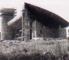 Corbusier生平晚期作品,在當時引起全世界轟動,也在於制式教堂模式的多樣中,有其相異其趣的符號法則;整棟教堂外觀有如一頂修女的帽子(有人也曾將其形象,用簡圖畫成五種圖案,試圖加以解釋所形成的要因為何….)。Le