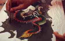 因此研發出以交趾陶技法塑造的初胚,再裝飾各種「剪」裁成形的瓷片「黏」於灰泥的表面,如此就可以彌補交趾陶的缺點,而技法多樣、用材也方便,更能表現的立體、生動,色彩艷麗較能耐久,其價錢也較交趾陶低廉。