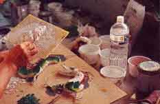 1.泥塑胚體 2.剪玻璃、瓷片