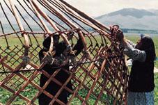 氈房的構造構件很少、製作方便、質柔量輕、拆卸組合方便、容易搬運,取材幾乎都是採用大自然的材料、而且不用很大的木材,和自己所飼養牲畜的副產品等的土產材料。 |