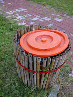 用竹子包圍成垃圾筒,沒有誇張的裝飾點綴... 我認為它是有創意的設計 ...樸實、無華...讓人有回歸自然的感覺。