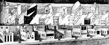 而Steven Holl似乎將維楚維斯的理念更加的落實於住宅的立面形式上,反應著居住者的產業。如1980---1984年的 自治工匠住宅 中,Steven Holl把獨特的自治工匠行業專長表現在每棟住宅的二樓:造紙工有一個用於乾燥紙張特殊形式的屋頂露台;木工住宅顯示出造船工的熟練技藝;磚工擁有一個磚砌筒形拱頂。一個蝕刻玻璃屋頂覆蓋著玻璃蝕刻工的入口通道等。與之類似手工藝行業的特色,都表現在他們的住宅之中。(如圖1、2 )