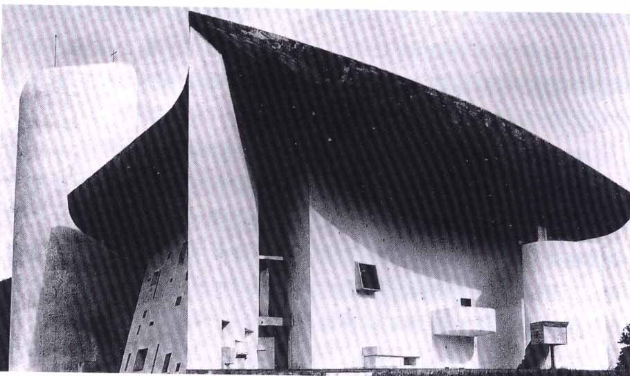 柯布的廊香教堂,這個建築在視覺隱喻上是過度的符碼化,以致於沒有一個隱喻是明確的。